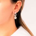 Σκουλαρίκια Excite Fashion Jewellery, ασημί ατσάλινοι κρίκοι με πέρλες και κρεμαστό κρύσταλλο Swarovski. S-1583-03-25-55