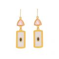 Χειροποίητα κρεμαστά σκουλαρίκια από την Excite Fashion Jewellery στολισμένα με κοραλί κρύσταλλο και μοτίφ με λευκό σμάλτο. S-1727-01-17-89