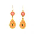 Χειροποίητα κρεμαστά σκουλαρίκια από την Excite Fashion Jewellery στολισμένα με κρύσταλλο και μοτίφ σταγόνα με σμάλτο σε κοραλί απόχρωση. S-1728-01-23-77