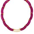 Χειροποίητο κολιέ από την Excite Fashion Jewellery με χρυσή και φούξια φαρδιές χάντρες σε ατσάλινη βάση. K-1739-01-32-135