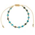 Βραχιόλι λεπτό μακραμέ Boho της Excite Fashion Jewellery, με γαλάζιο-μπλέ πέτρες, και χρυσές χάντρες. B-110474-45