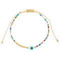 Βραχιόλι λεπτό μακραμέ Boho της Excite Fashion Jewellery, με ματάκι, πολύχρωμες και χρυσές χάντρες. B-110484-45