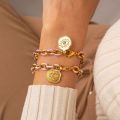 Βραχιόλι από επιχρυσωμένο ανοξείδωτο ατσάλι Excite Fashion Jewellery, αλυσίδα, με ροζ σμάλτο, κρεμαστό μοτίφ ματάκι στολισμένο με ροζ κρυσταλλάκι. B-1701-01-11-55