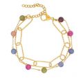 Χειροποίητο διπλό βραχιόλι της Excite Fashion Jewellery, από ανοξείδωτο ατσάλι με πολύχρωμες πέτρες και οβάλ επίχρυση αλυσίδα. B-1730-01-04-65