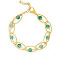 Χειροποίητο διπλό βραχιόλι της Excite Fashion Jewellery, από ανοξείδωτο ατσάλι με πράσινες πέτρες και οβάλ επίχρυση αλυσίδα. B-1730-01-30-65