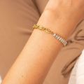 Βραχιόλι half & half από την Excite Fashion Jewellery, στριφτή αλυσίδα, λευκά τετράγωνα κρύσταλλα, από ανοξείδωτο επιχρυσωμένο ατσάλι. B-YH231A-G-9