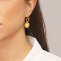 Σκουλαρίκια Excite Fashion Jewellery σπιράλ κρίκοι, κρεμαστά στρογγυλά στοιχεία με ακτίνες και λευκές πέτρες απο ανοξείδωτο επιχρυσωμένο ατσάλι. E-6-60-3-G