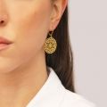 Σκουλαρίκια Excite Fashion Jewellery κρεμαστά με στρογγυλό στοιχείο και διάτρητο σχέδιο από επιχρυσωμένο ανοξείδωτο ατσάλι E-75-56-G