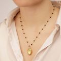 Κολιέ ροζάριο με μαύρες πέτρες κσι μοτίφ αχιβάδα με επίχρυση ατσάλινη αλυσίδα. K-1156-01-06-6K-1156-01-06-6