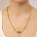 Κολιέ με ατσάλινη επίχρυση αλυσίδα και γυάλινη οβάλ μπέζ καφέ πέτρα Μουράνο. K-1158-01-04-59K-1158-01-04-59