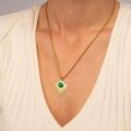 Κολιέ από ανοξείδωτο επιχρυσωμένο ατσάλι της Excite Fashion Jewellery, μοτίφ τριγωνικό με ακτίνες στολισμένο με πέτρα Μαλαχίτη. K-1700-01-18-89