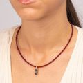 Κολιέ από επίχρυσο ανοξείδωτο ατσάλι της Excite Fashion Jewellery με κόκκινες γυάλινες χάντρες και ατσάλινο στοιχείο με μαύρο ζιργκόν. K-1702-01-06-99