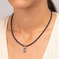 Κολιέ από επίχρυσο ανοξείδωτο ατσάλι της Excite Fashion Jewellery με μπλέ γυάλινες χάντρες και ατσάλινο στοιχείο με μπλέ ζιργκόν. K-1702-01-21-99