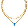 Διπλό κολιέ Excite Fashion Jewellery με μπλέ χάντρα και διαμανταρισμένη αλυσίδα με οβάλ κρίκους από επιχρυσωμένο ανοξείδωτο ατσάλι. K-1719-01-07-79