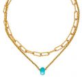 Διπλό κολιέ Excite Fashion Jewellery με τυρκουάζ χάντρα και διαμανταρισμένη αλυσίδα με οβάλ κρίκους από επιχρυσωμένο ανοξείδωτο ατσάλι. K-1719-01-30-79