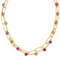 Διπλό κολιέ Excite Fashion Jewellery με πολύχρωμες ημιπολύτιμες πέτρες και διαμανταρισμένη αλυσίδα με οβάλ κρίκους από επιχρυσωμένο ανοξείδωτο ατσάλι. K-1722-01-04-115