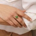Δαχτυλίδι Excite fashion jewellery, με πράσινη πέτρα, επίχρυσο στοιχείο, και dots από ανοξείδωτο ατσάλι. R-2109-ENAMEL-6
