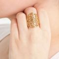 Δαχτυλίδι με φαρδύ διάτρητο σχέδιο από επιχρυσωμένο ανοξείδωτο ατσάλι (δεν μαυρίζει) και είναι υποαλλεργικό. R-59-012G
