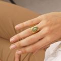 Δαχτυλίδι Excite Fashion Jewellery με ανάγλυφη γάμπα, σμάλτο και πράσινη πέτρα, από επιχρυσωμένο ανοξείδωτο ατσάλι. R-YH795A-G-GREEN-69
