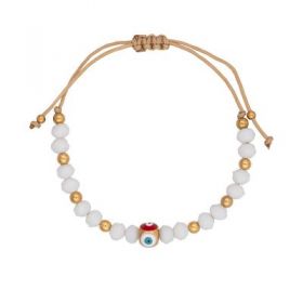 Βραχιόλι μακραμέ της Excite Fashion Jewellery, επίχρυσο πολύχρωμο ματάκι με σμάλτο και λευκές πέτρες. B-1405-01-01-49