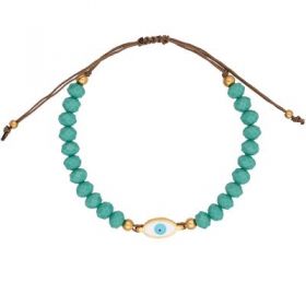 Βραχιόλι μακραμέ της Excite Fashion Jewellery, επίχρυσο οβάλ ματάκι με σμάλτο και τυρκουάζ πέτρες B-1409-03-03-49