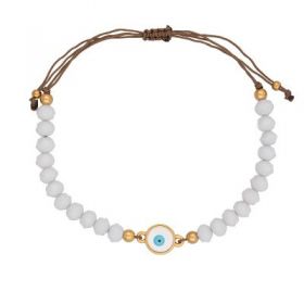 Βραχιόλι μακραμέ της Excite Fashion Jewellery, επίχρυσο στρογγυλό ματάκι με σμάλτο και λευκές πέτρες. B-1410-03-01-49