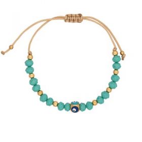 Βραχιόλι μακραμέ της Excite Fashion Jewellery, επίχρυσο πολύχρωμο ματάκι με σμάλτο και τυρκουάζ πέτρες. B-1405-01-03-49