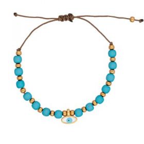 Βραχιόλι μακραμέ της Excite Fashion Jewellery, επίχρυσο κρεμαστό οβάλ ματάκι με σμάλτο και τυρκουάζ πέτρες. B-1406-03-08-79