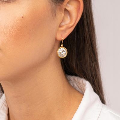 Χειροποίητα σκουλαρίκια Excite Fashion Jewellery με λευκό κρύσταλλο από επιχρυσωμένο ατσάλι S-848-01-25-5