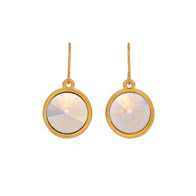 Χειροποίητα σκουλαρίκια Excite Fashion Jewellery με ivory κρύσταλλο από επιχρυσωμένο ατσάλι S-848-01-17-5