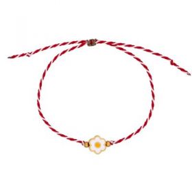 Βραχιόλι Μαρτάκι της Excite fashion jewellery , φτιαγμένο με το παραδοσιακό άσπρο κόκκινο κορδόνι, μεταλλικό στοιχείο λουλουδάκι με λευκό σμάλτο. BMAR-1701-01-17-32