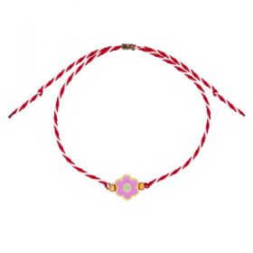 Βραχιόλι Μαρτάκι της Excite fashion jewellery , φτιαγμένο με το παραδοσιακό άσπρο κόκκινο κορδόνι, μεταλλικό στοιχείο λουλουδάκι με σμάλτο. BMAR-1701-01-24-32