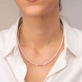 Κολιε Excite fashion jewellery με πέρλες και οβάλ ροζ ματάκι από φίλντισι. K-1615-01-11-55