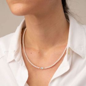 Κολιε Excite fashion jewellery με πέρλες και οβάλ ματάκι από φίλντισι. K-1615-01-17-55