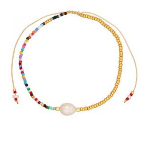 Βραχιόλι ποδιού μακραμέ της Excite Fashion Jewellery με πέρλα και half & half πολύχρωμες και χρυσές χάντρες. BP-110470-45