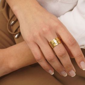 Δαχτυλίδι Excite Fashion Jewellery φαρδύ, με σταγόνα φίλντισι και dots από επίχρυσο ανοξείδωτο ατσάλι. R-14H02-WHITE-6