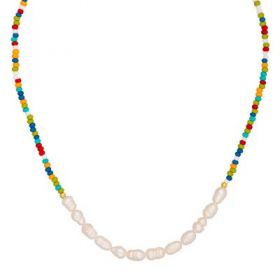 Κολιέ Boho της Excite Fashion Jewellery, με πέρλες και πολύχρωμες χάντρες. N-110514-85