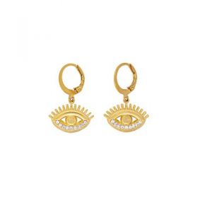 Κρικάκια Excite Fashion Jewellery με κρεμαστά ματάκια στολισμένα με λευκά κρυσταλλάκια από επιχρυσωμένο ανοξείδωτο ατσάλι. S-1707-01-01-77