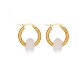 Κρίκοι από την Excite Fashion Jewellery με περαστή λευκή χάντρα από επιχρυσωμένο ανοξείδωτο ατσάλι . S-1724-01-17-59