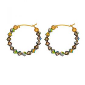 Κρίκοι Excite Fashion Jewellery, με πράσινα ιριδίζον κρυσταλλάκια από ανοξείδωτο επιχρυσωμένο ατσάλι. S-1729-01-04-66