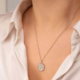Κολιέ με το ζώδιο του Ιχθύ σε ανάγλυφο μοτίφ με λευκά ζιργκόν από επιπλατινωμένο 925. Z-PISCES-S-75
